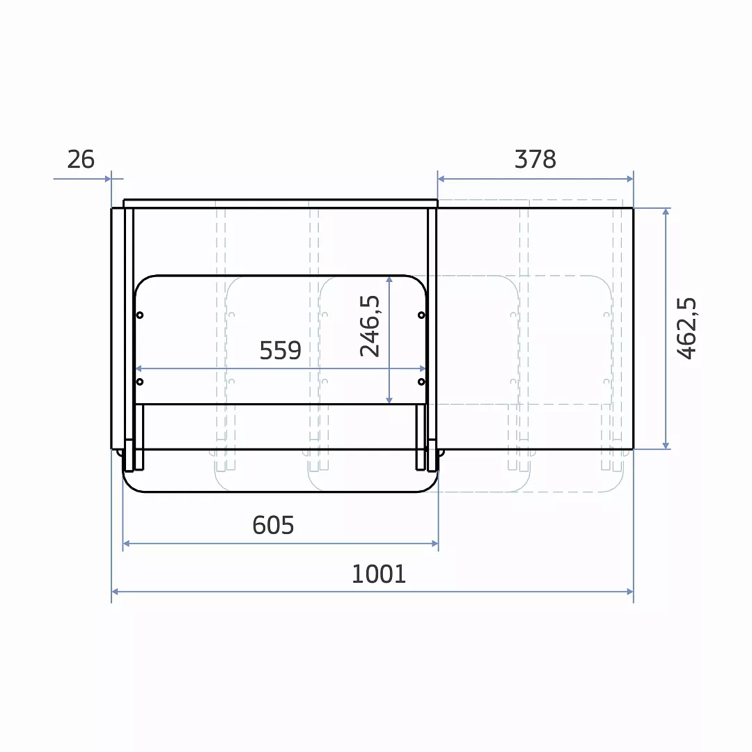 общие габариты: 106*52*26,5 см.